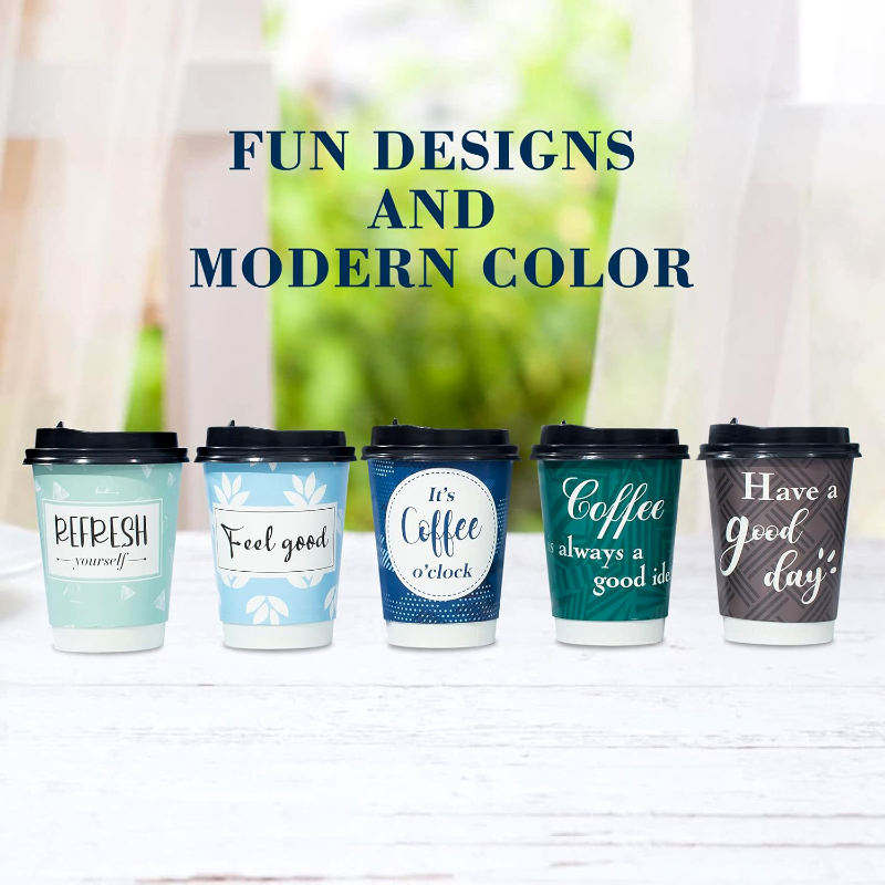 Gobelet en papier biodégradable personnalisé imprimé Tapa 8oz 12oz 16oz double paroi pour café chaud jetable avec couvercle pour boissons chaudes et froides thés
