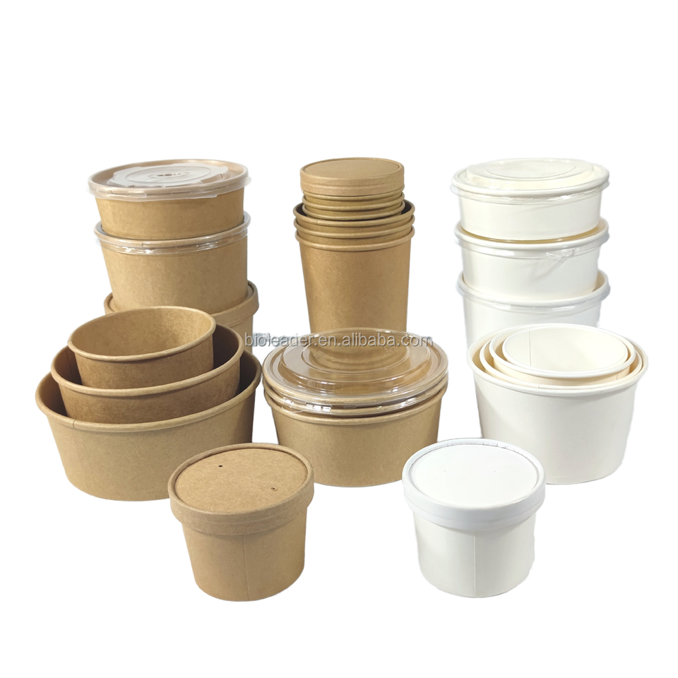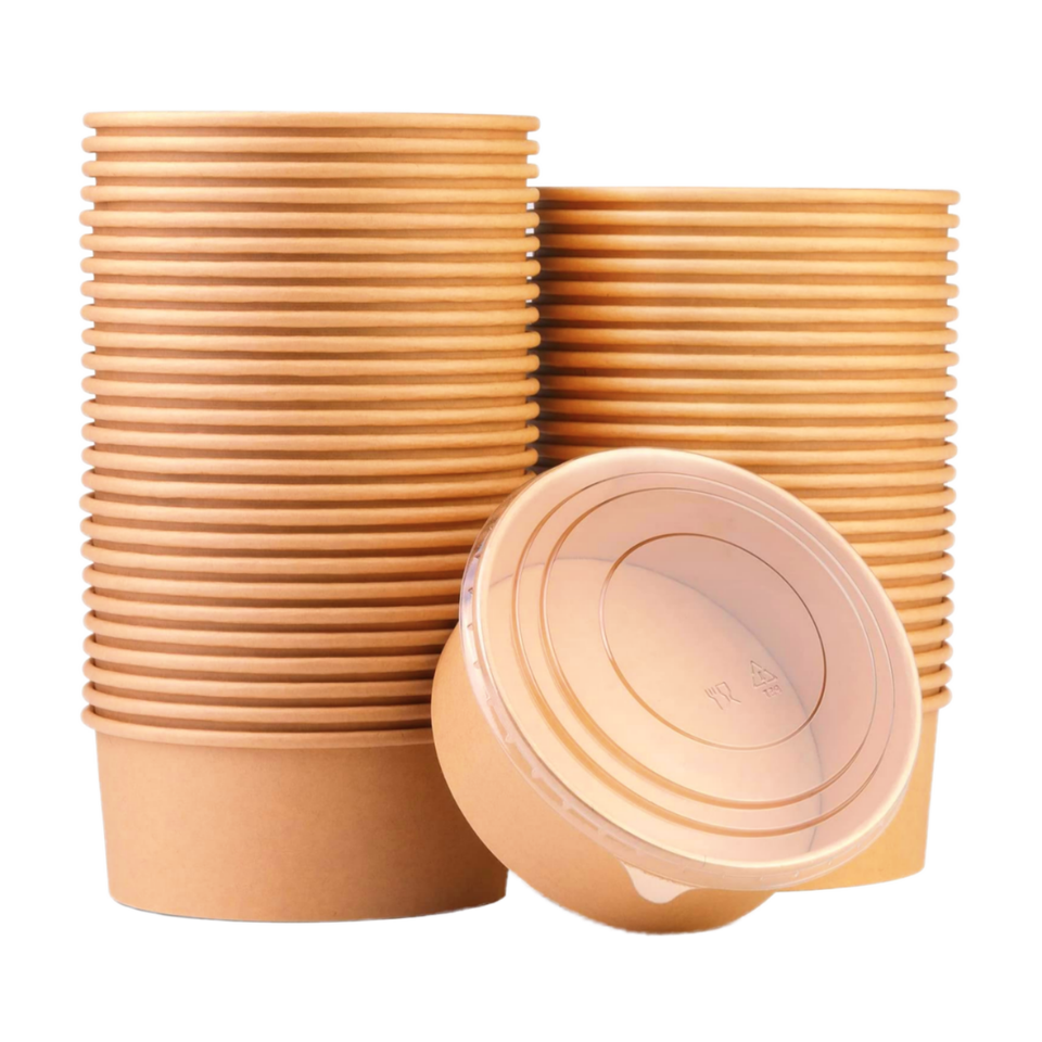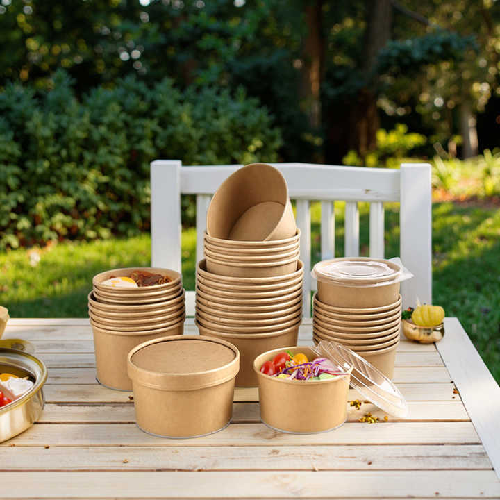 Ensemble d'assiettes et bols en papier kraft biodégradables jetables de qualité alimentaire pour collations, salades, nouilles, boîtes à emporter avec bols et couvercles