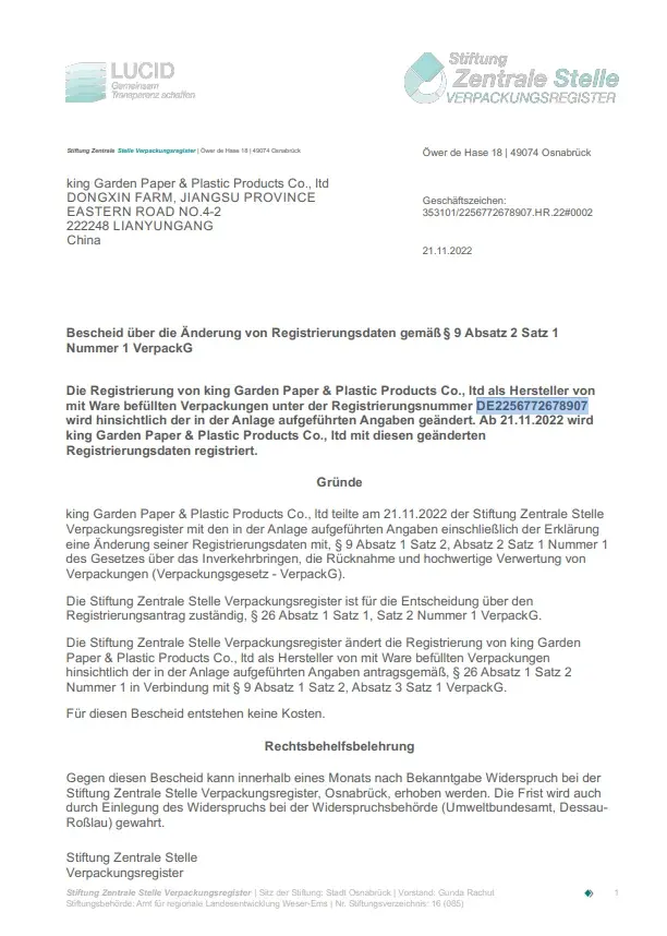 Marque nom:King Garden