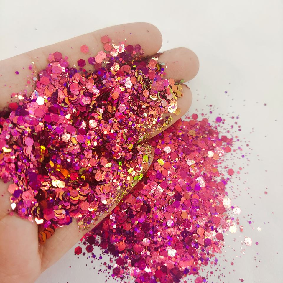 Cosmétique holographique biodégradable de poudre de scintillement épaisse de corps carré d'hexagone biodégradable écologique pour des cadeaux de Noël Commande minimum 1kg