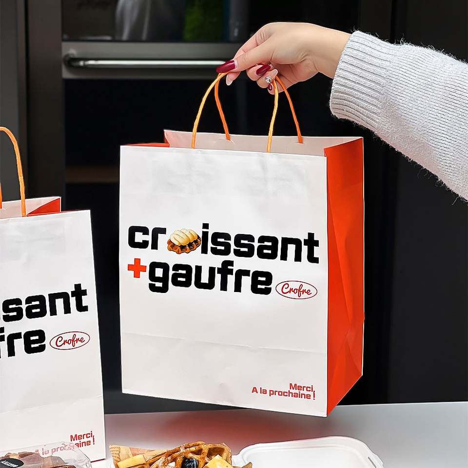 Sac fourre-tout en papier kraft biodégradable et écologique pour gâteaux, desserts, pains, croissants à emporter avec logo imprimé
