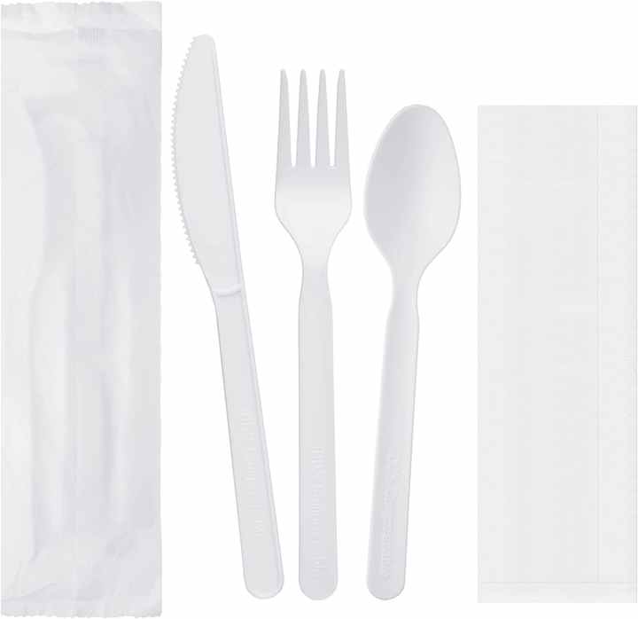 Couverts biodégradables 100% ensemble de couverts jetables compostables en PLA blanc 170mm fourchette couteau cuillère ensemble de vaisselle
