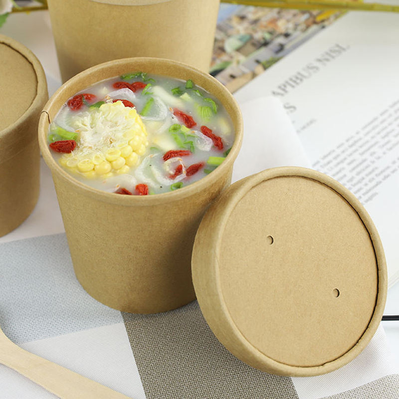 Gobelets et bols à soupe jetables en papier biodégradable de qualité alimentaire, personnalisables pour la vente à emporter, bols à nouilles et salades, emballages en papier pour soupes