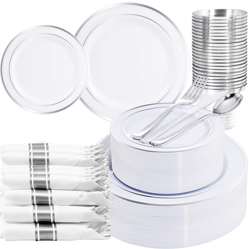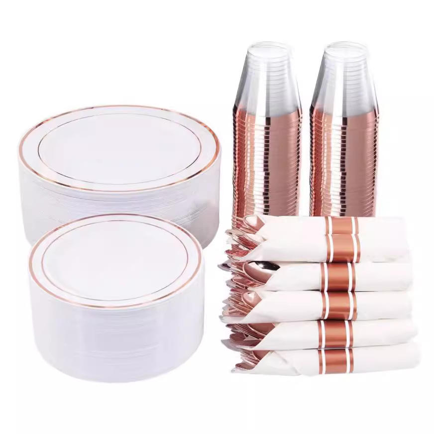 Ensemble de couverts jetables biodégradables à bordure dorée
