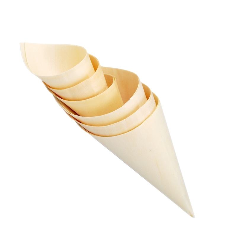Cône en bois biodégradable de style japonais pour apéritifs de dessert, salades dans les restaurants, les bars, les auberges et les dîners