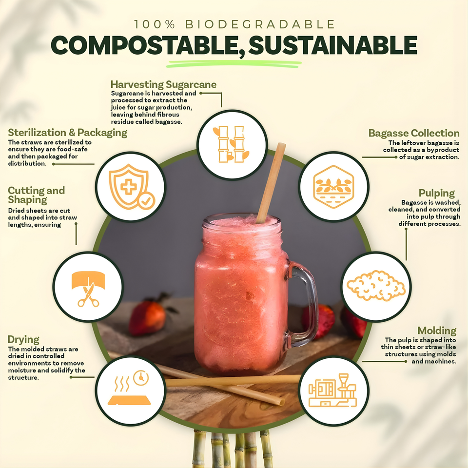 Pailles biodégradables en canne à sucre, pailles en bagasse pour boire