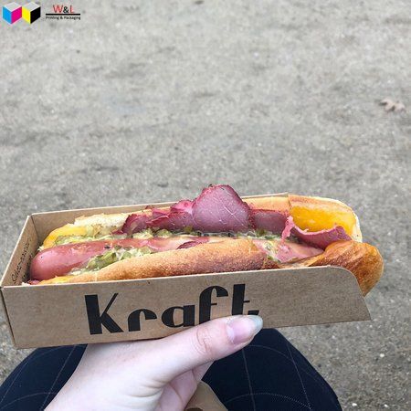 Biodégradable à emporter à emporter aller à 100% boîte d'emballage de plateau de hot-dog en papier kraft de qualité alimentaire