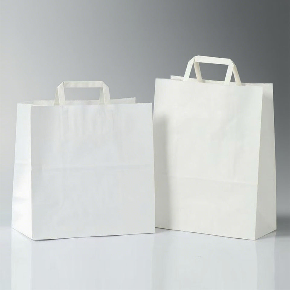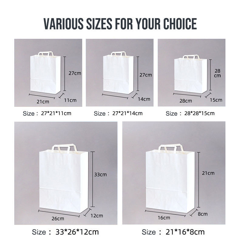 Sac de Transport en Papier Kraft Marron Biodégradable avec Poignée Plate pour Vente en Gros, Repas Rapide, À Emporter, Impression Personnalisée pour Magasin