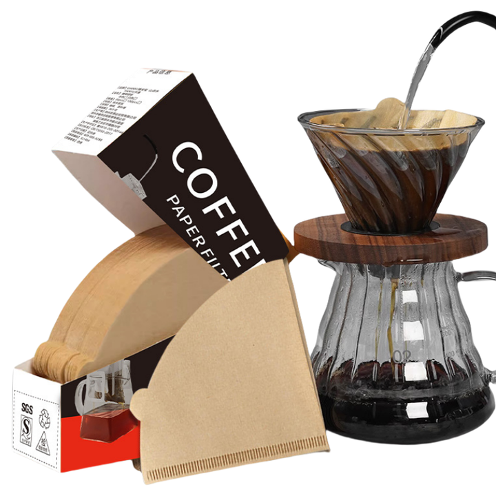 Papier filtre à café en pulpe de bois biodégradable jetable, lot de 100 pièces, forme en V/conique, filtre à café à dégoulinement manuel pour la préparation du café