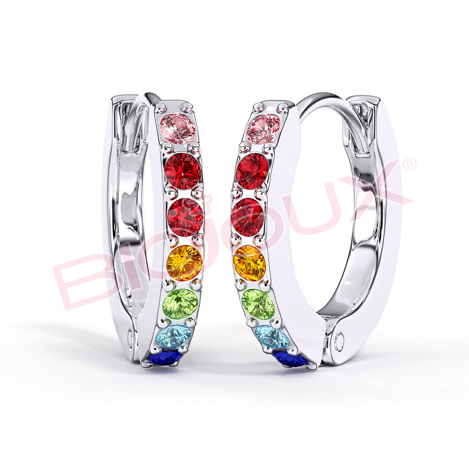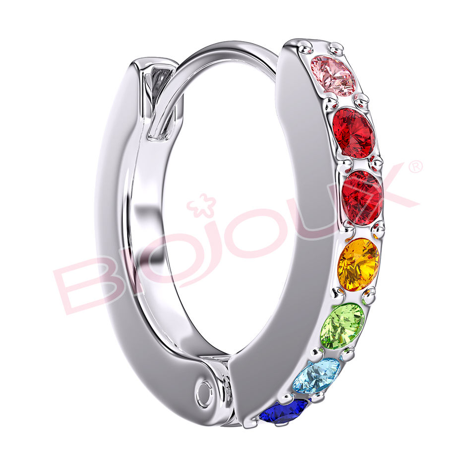 Biojoux BJT725 Boucles d'oreilles créoles tendance multicolores en cristal pour enfants en acier inoxydable 10 mm