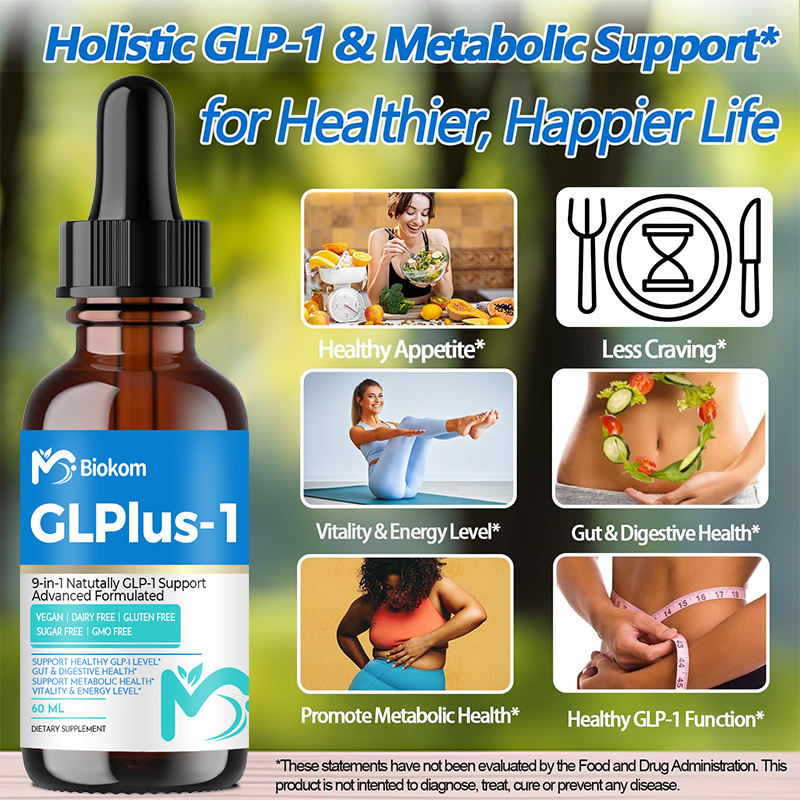 Biokom 9-en-1 Gouttes liquides quotidiennes naturelles GLP-1 avec berbérine HCl, cannelle de Ceylan, thé vert, ériocitrine pour la digestion intestinale