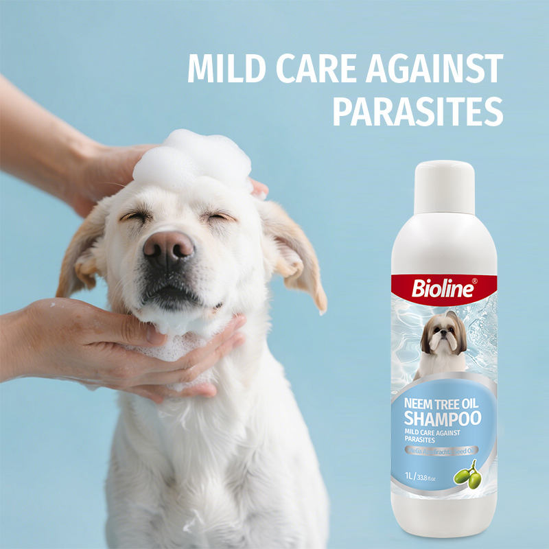 Shampooing pour chien Bioline à base de plantes, répulsif contre les insectes, huile essentielle naturelle de neem, brillance soyeuse, 1000 ml