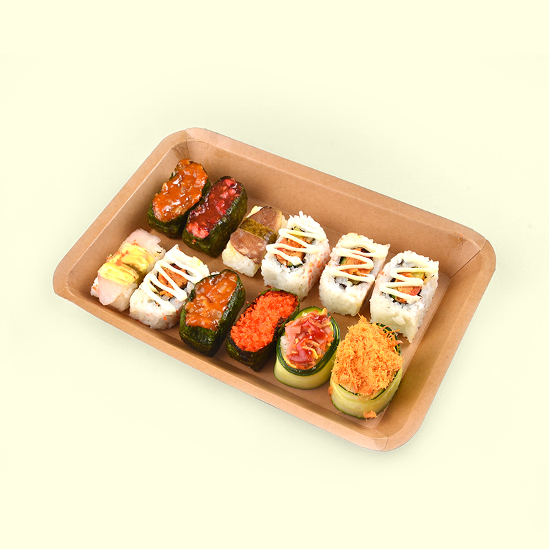 Biopartner Brown Kraft Paper Cake Dessert Sushi Tray Disposable Sushi Plates Take Out Food Container Package