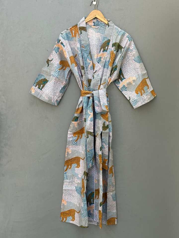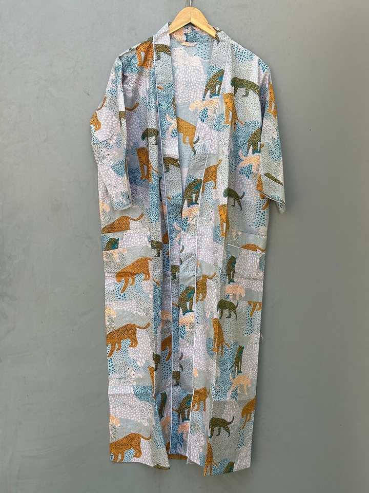 Robe kimono en coton à imprimé oiseaux, col en V, manches longues, style bohème, kaftan de festival, tenue élégante pour la maison, été, printemps, séchage rapide