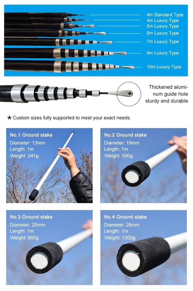 Telescopic pole:4m/5m/6m/7m/9m/10m