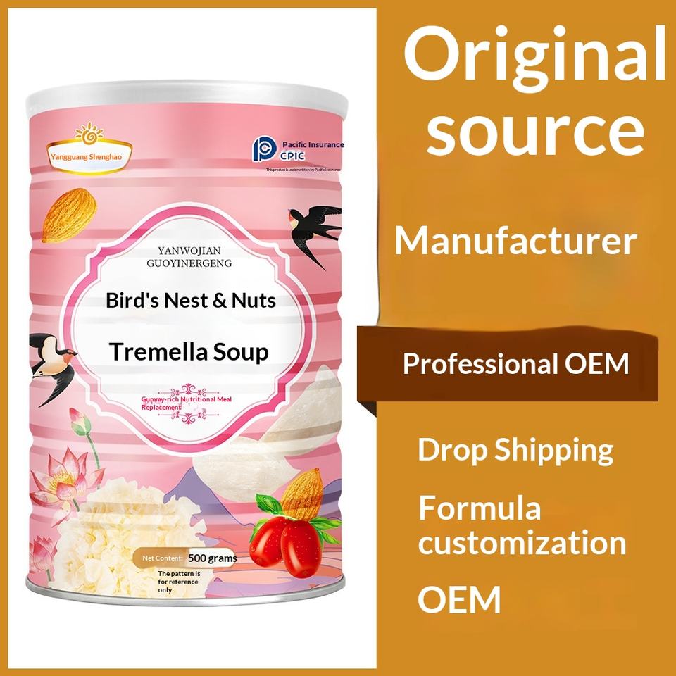 Soupe instantanée nutritive de fruits et de noix à base de poudre de racine de lotus, de noix de nid d'oiseau et de noix d'oreille d'argent, substitut de repas