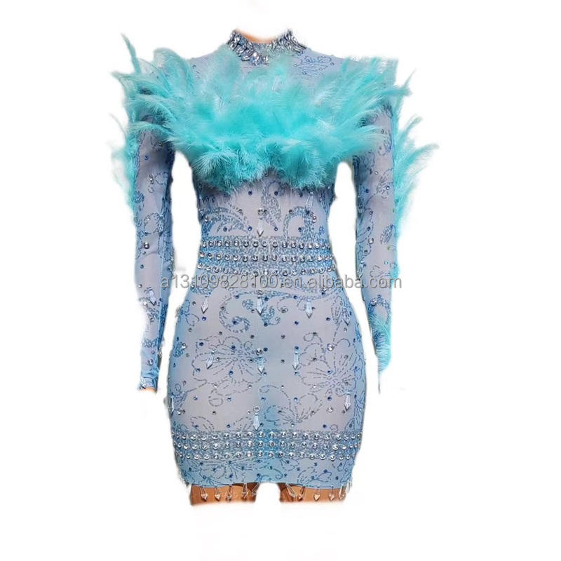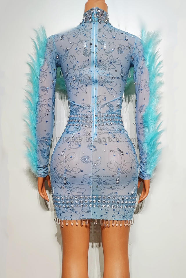 Birdman plume maille épissé eau diamant serré et Sexy fée robe anniversaire Banquet discothèque Bar fête Performance Costume