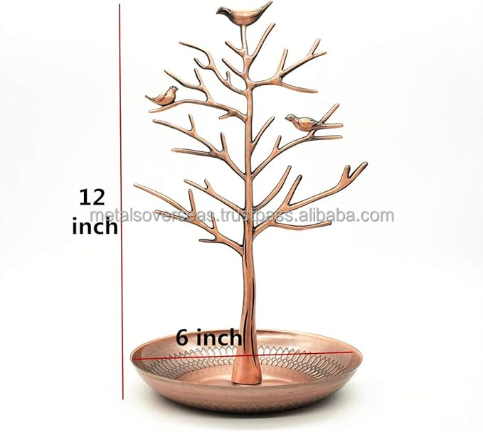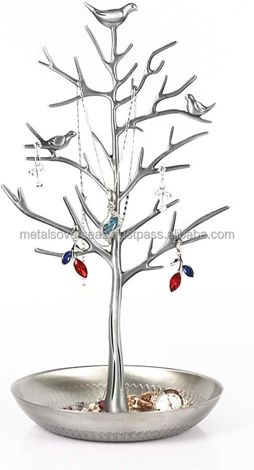 Oiseaux Arbre Bijoux Stand Affichage Boucle D'oreille Collier Titulaire Organisateur Rack Bijoux Rack avec Plateau En Métal pour Anneau Boucles D'oreilles Bracelet