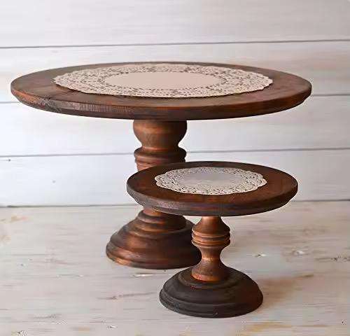 Anniversaire et fête célébration plateau à gâteau arrondi support gravé à la main décoratif Design moderne support à gâteau en bois