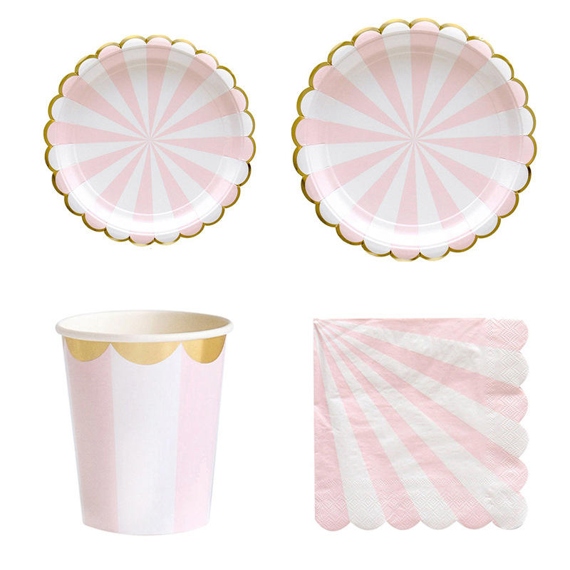 Assiettes de fête d'anniversaire, ensembles de vaisselle en papier jetables, de mariage de noël, Kit de vaisselle jetable coloré écologique