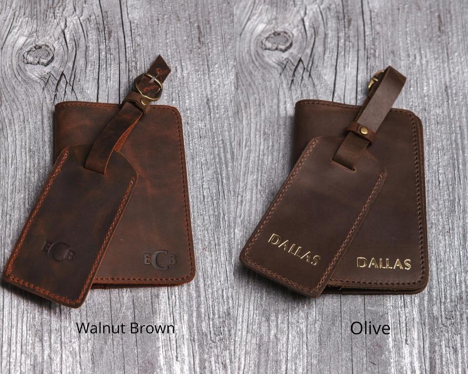 Portefeuille de passeport d'anniversaire couverture personnalisée porte-monnaie en cuir et ensemble d'étiquettes de bagage pour hommes LPT-0032