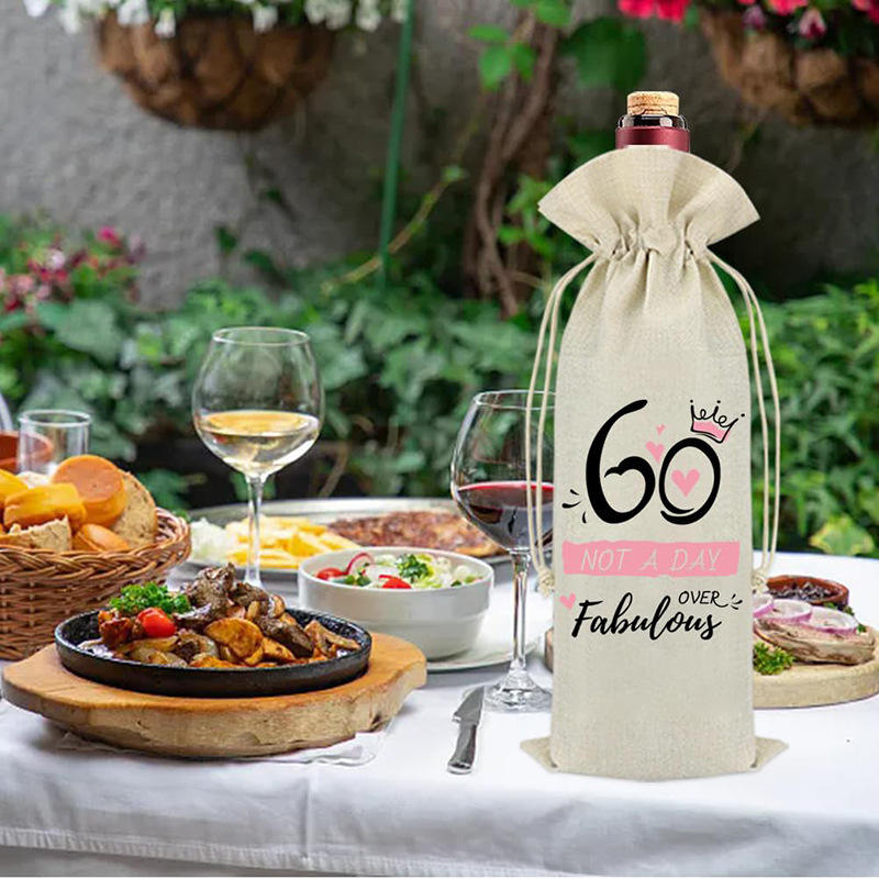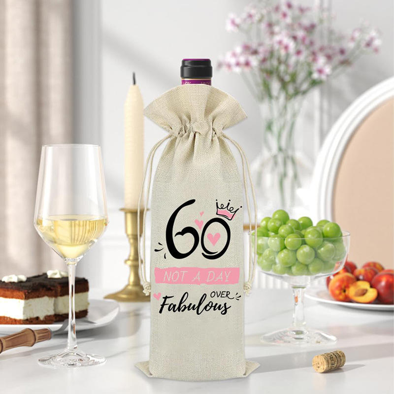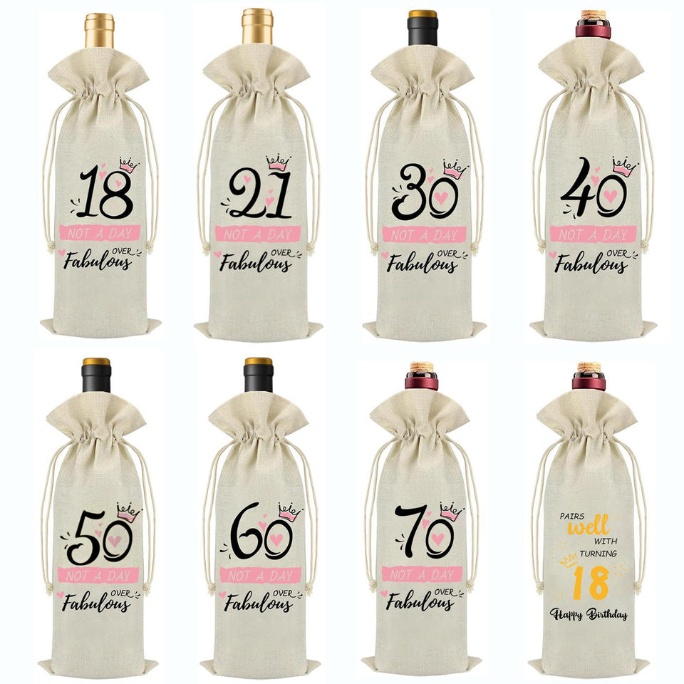 Thème d'anniversaire chanvre cordon sac à vin fête bouteille de vin couverture sac cadeau d'anniversaire