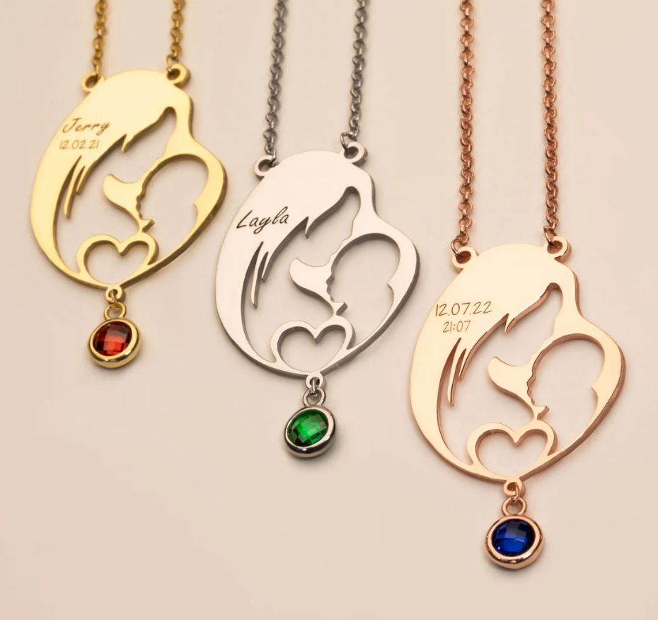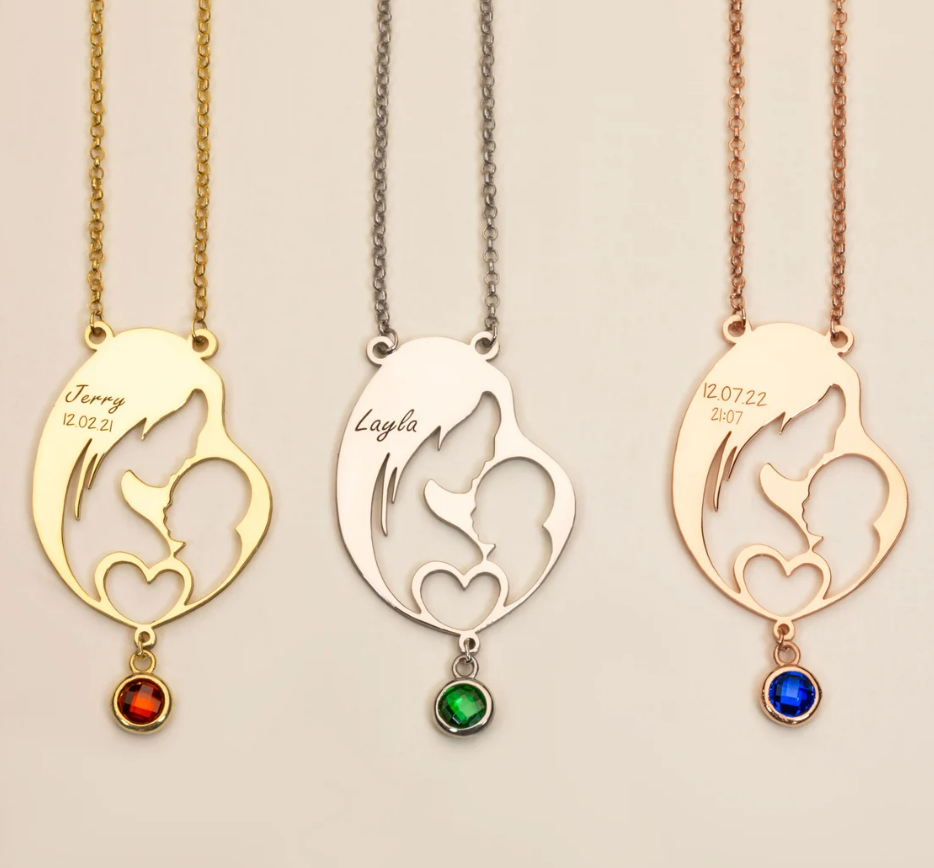 Collier de maman avec pierre de naissance, collier pour première maman, collier personnalisé avec nom gravé, collier maman et bébé avec pierre de naissance, cadeau personnalisé pour maman
