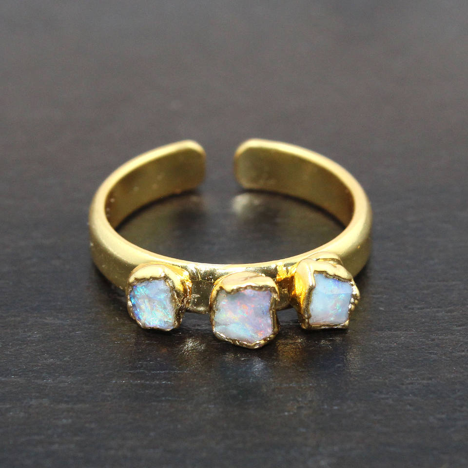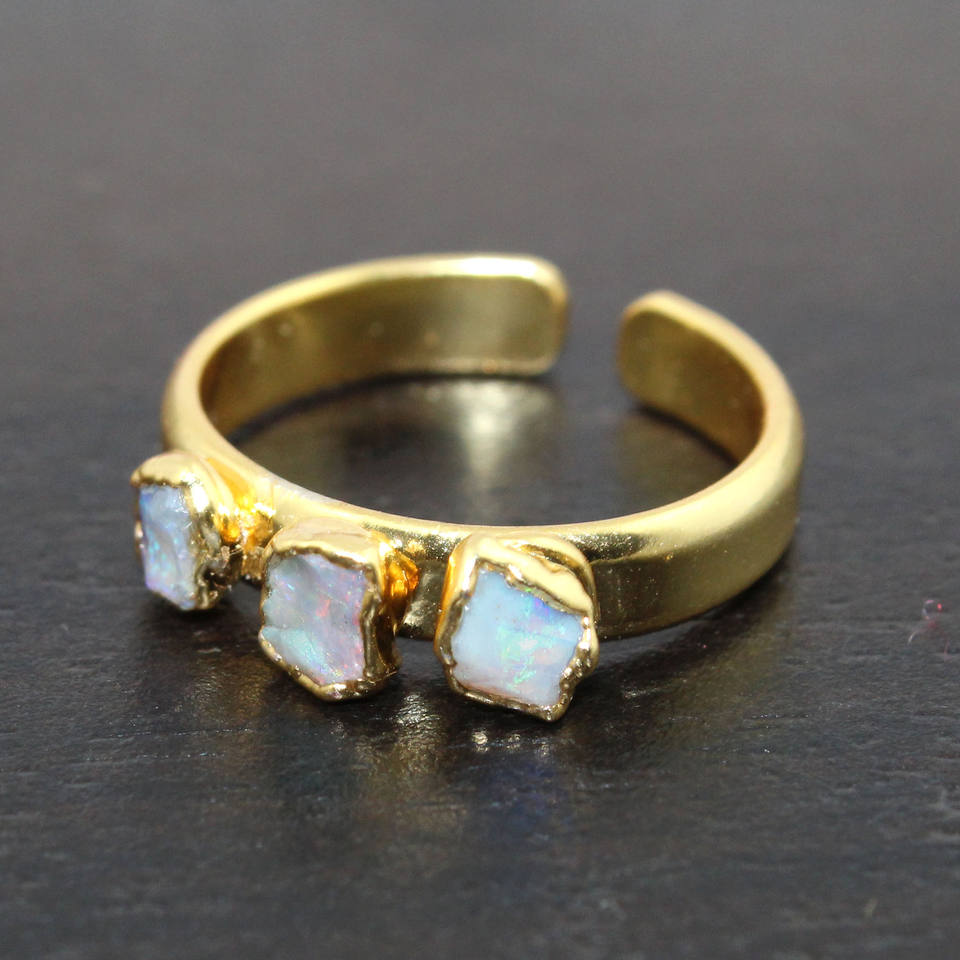 Bague de pierre de naissance Bague réglable galvanisée en or opale australienne brute