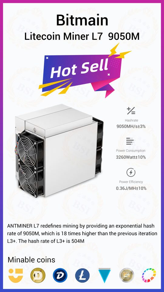Bitmain Antminer L7 Asic miner L7 Miner L7 9050M 8550M 8300M 8800M 9300M Machine minière Litecoin Dogecoin Bells Crypto Miner