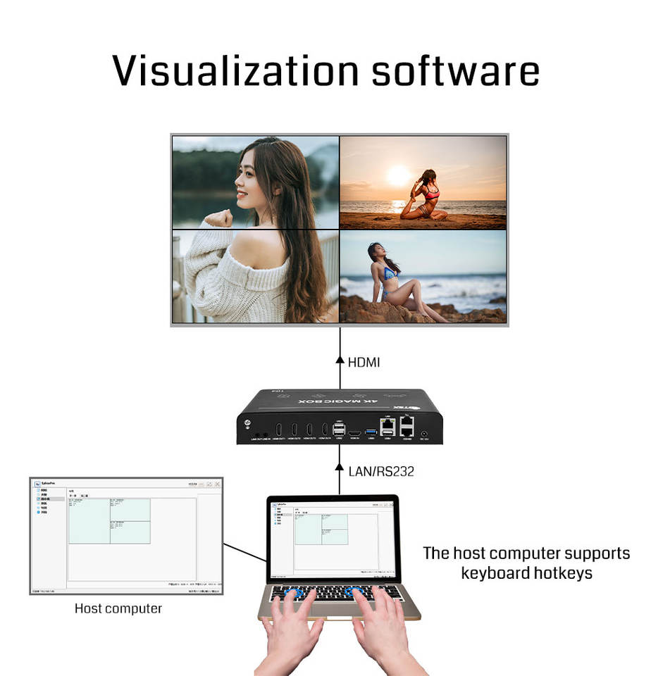 Contrôleur de mur vidéo de forme spéciale Bitvisus BIT-VJ-104 4K 4 sorties HDMI - Collage d'angle arbitraire 2x2 1x4 1x3 1x2 4x1