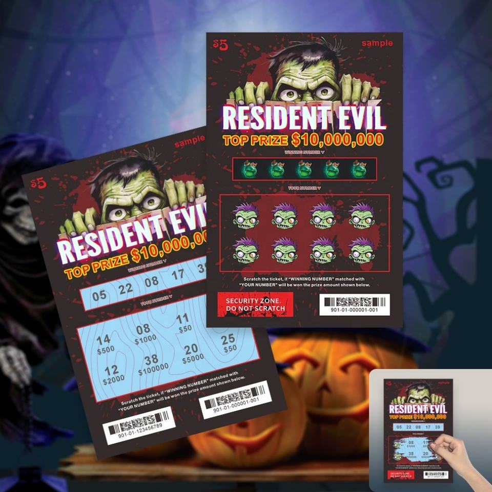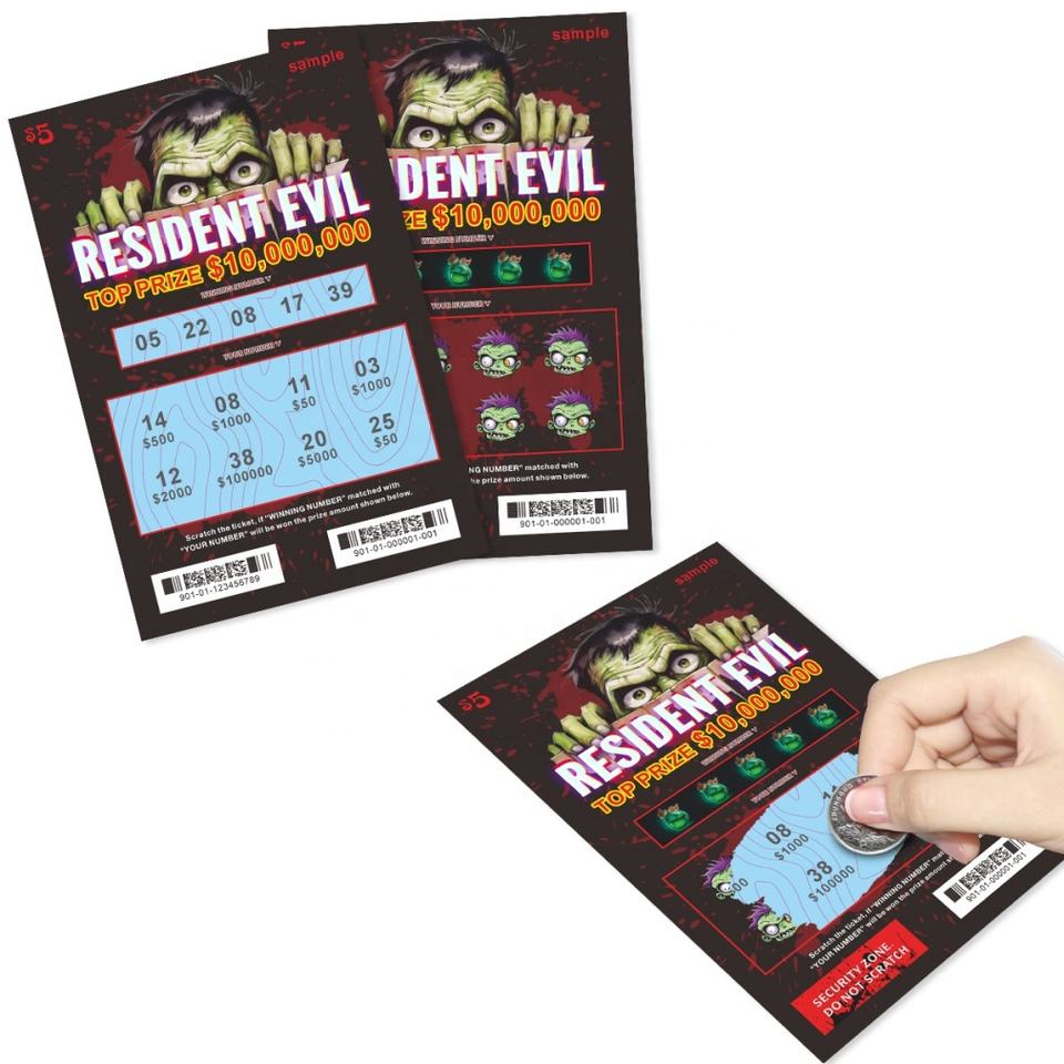 Loteries au design original : Impression personnalisée, numéros gagnants, à gratter, revêtement UV, papier de sécurité, données