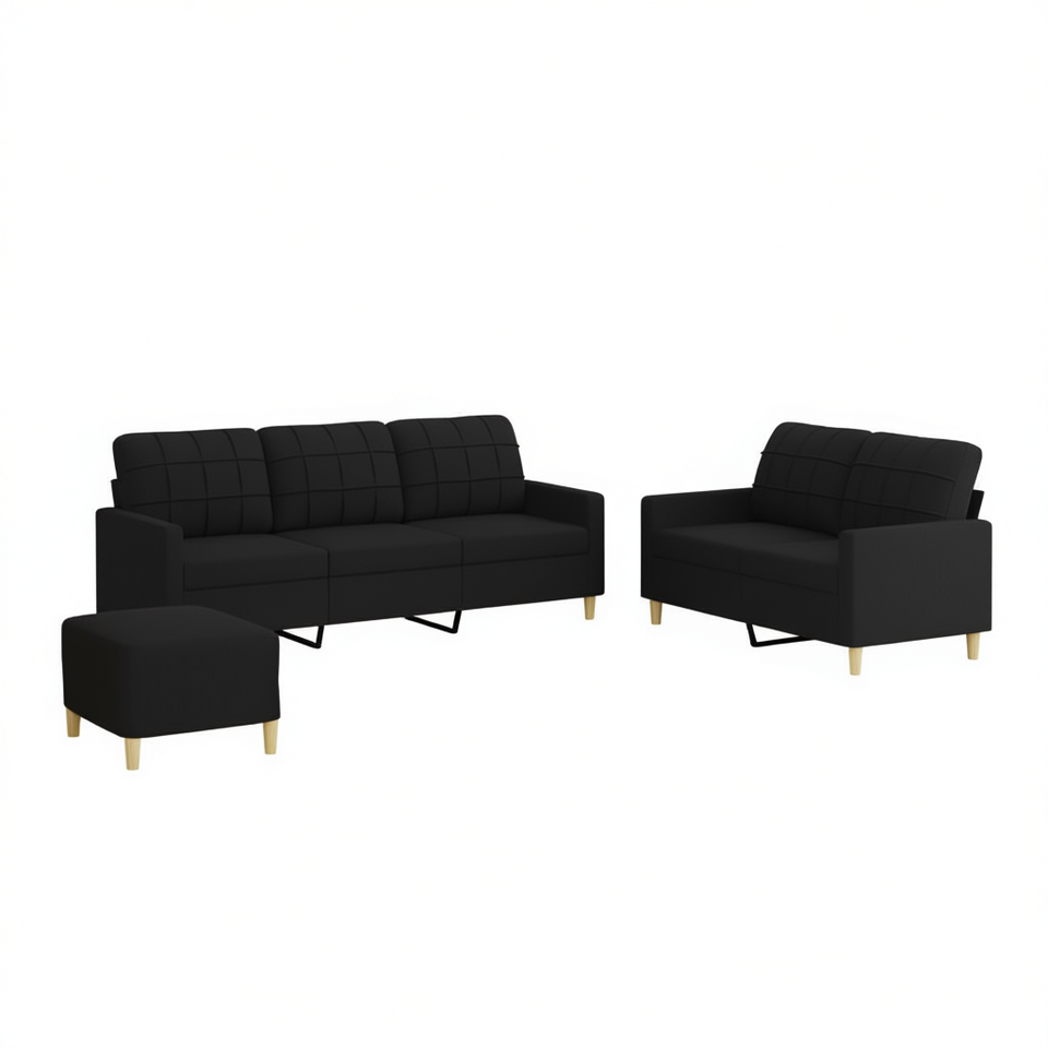 Ensemble de canapés sectionnels modernes noirs avec dossier capitonné et pieds en bois pour salon