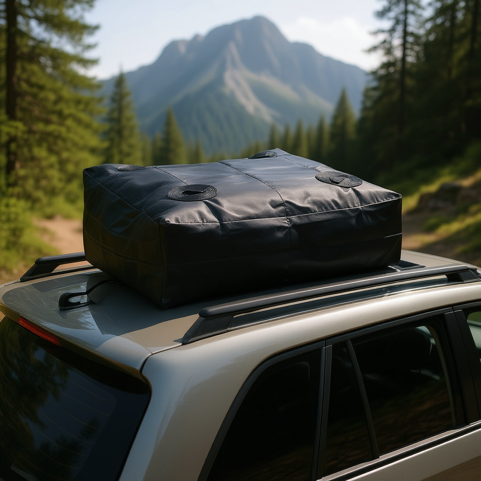 Black 15 Cubic Feet Waterproof Rooftop Cargo Carrier With Heavy Duty Straps Fits All Cars