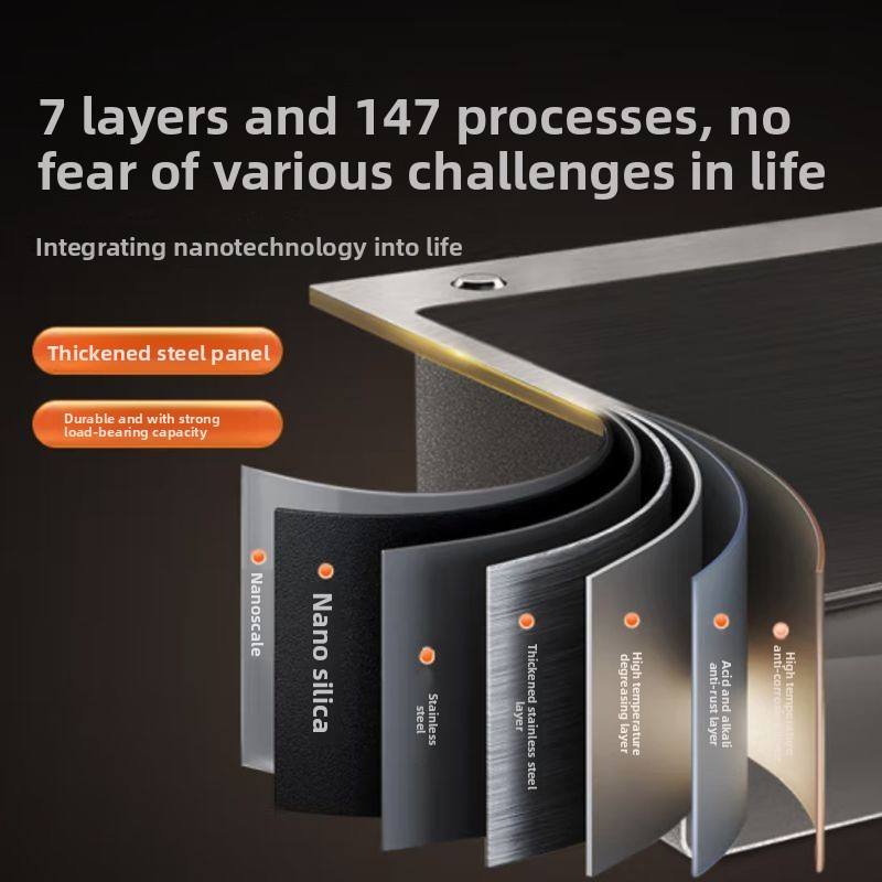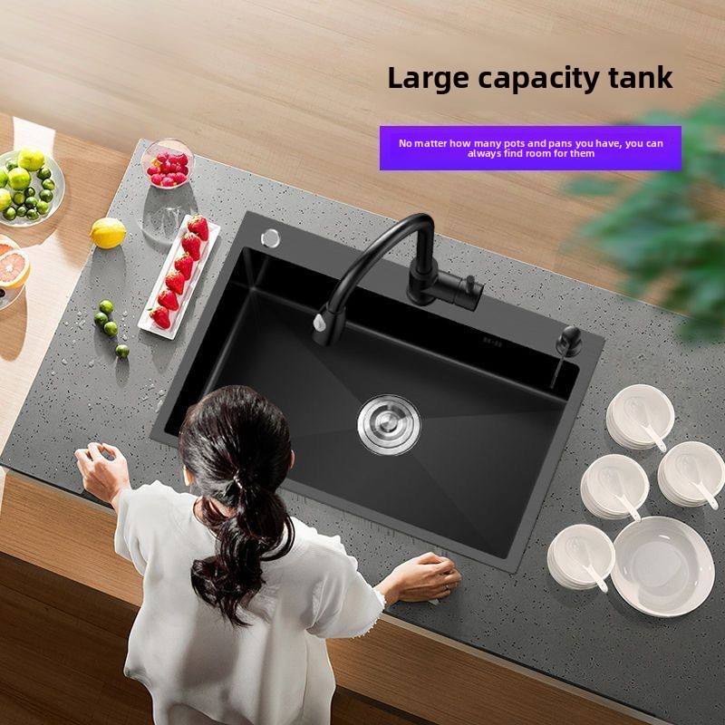 Évier de cuisine rectangulaire noir en acier inoxydable 201, grande cuve unique, surface nano anti-graisse pour usage domestique
