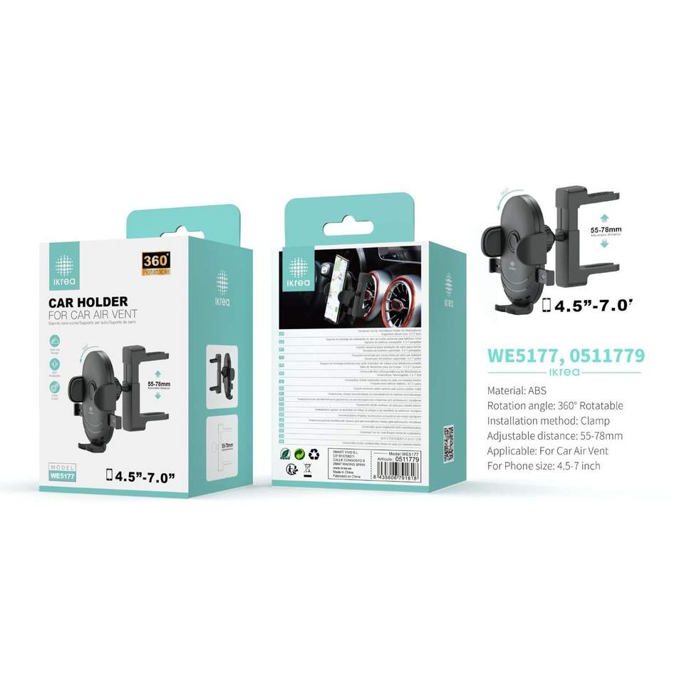 Black 360° Universal Car Air Vent Clip Mount Holder Rotatable Automotive Accessory Phone Holder with Box Packaging