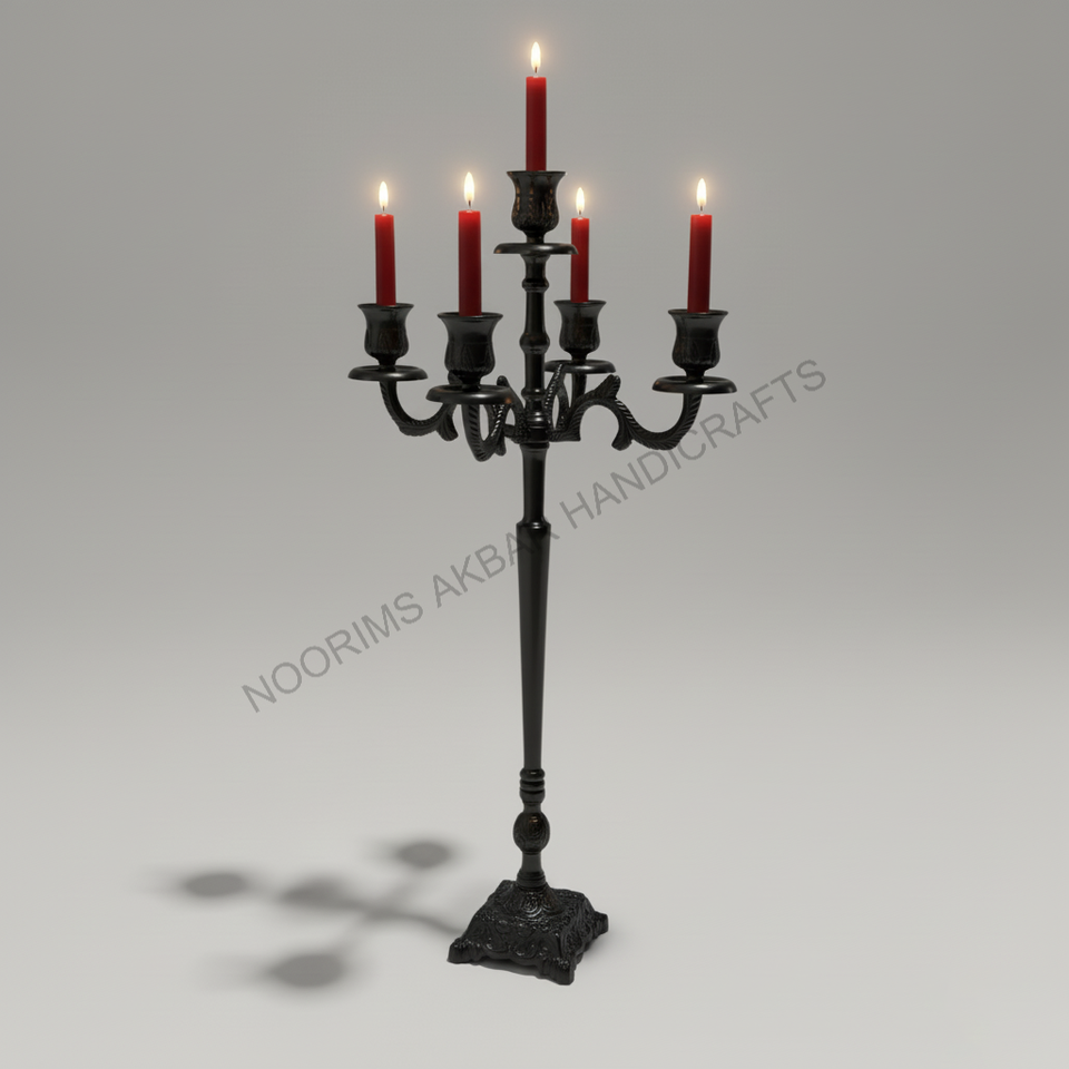 Black 5 Arm Aluminum Candelabra Eco Friendly Heat Resistant Tabletop Wedding Christmas Centerpiece Candle Stand Holder Exporter