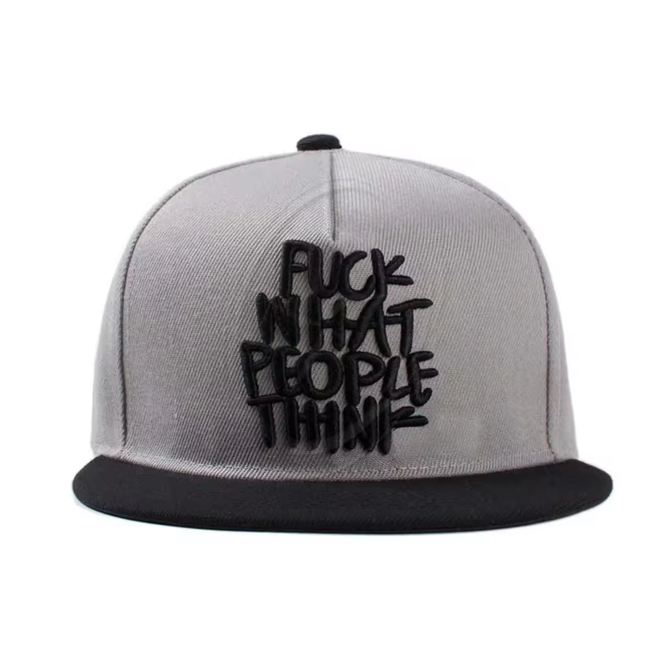 Casquette Snapback Noire à 6 Panneaux, Design Personnalisé, Broderie Logo Mascotte, Visière Plate, Sergé de Coton, Style Urbain