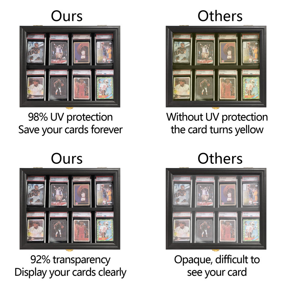 Vitrine de carte de sport noire à 8 niveaux porte-carte de baseball mural horizontal rectangulaire avec acrylique à ouverture frontale