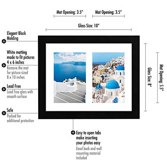 Cadre en bois noir 8x10 avec deux ouvertures 4x6 idéal pour les affichages de photos de collage Cadre mural décoratif