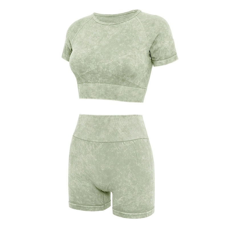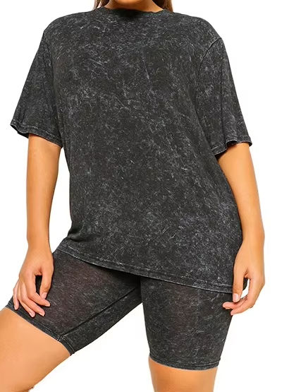 Ensemble T-shirt et short de motard décontracté pour femme en coton 100% délavé à l'acide, anti-boulochage, pour l'été - Tailles et couleurs personnalisables