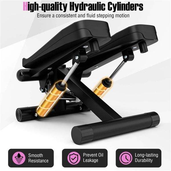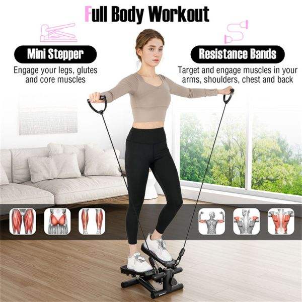Mini stepper noir à intensité réglable avec écran LCD et bandes de résistance incluses pour usage domestique