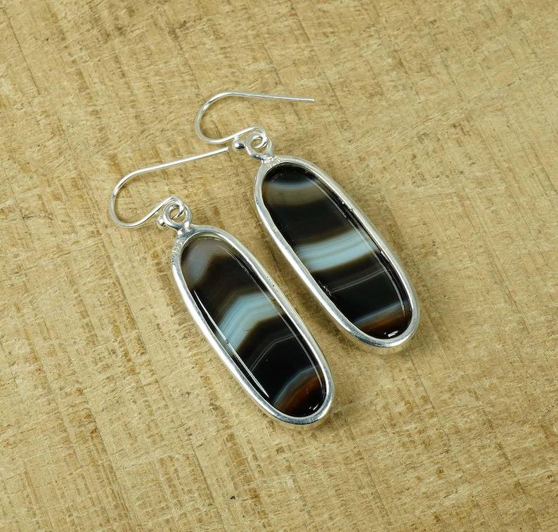 Keyword:Black Agate Stud Earrings With Sparkling Black Agate Stones