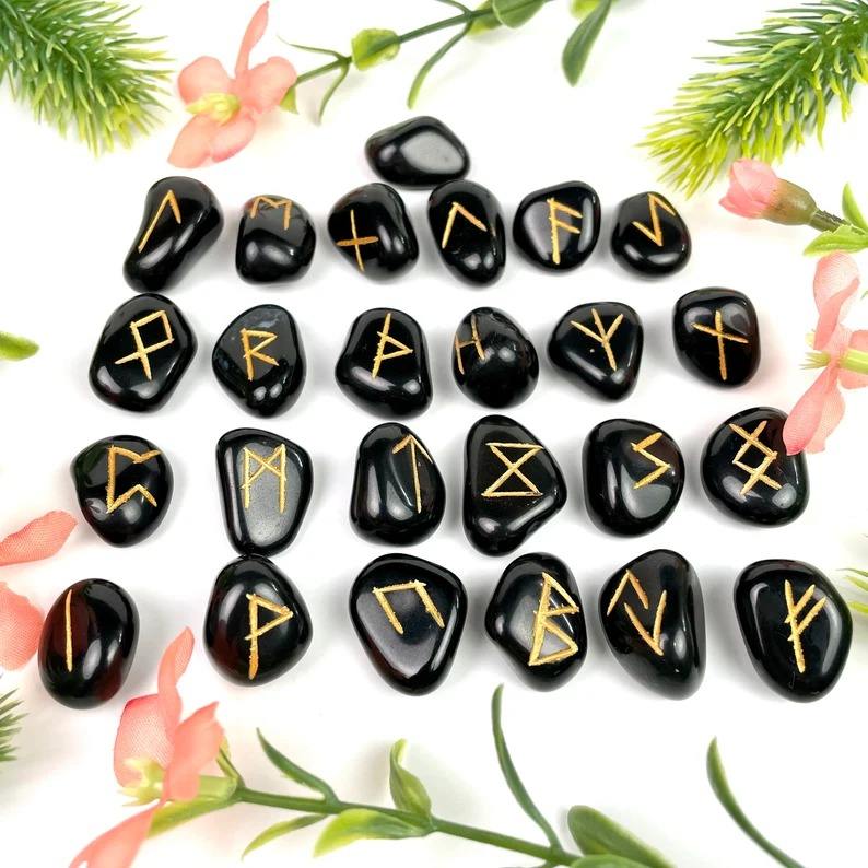 Nom du produit:Ensemble de pierre runique en obsidienne noire