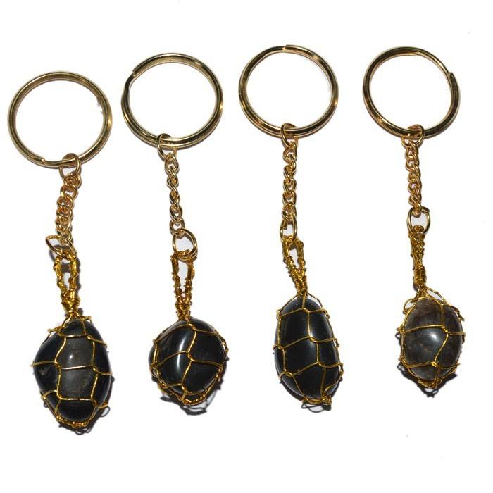 Agate noire dégringolée Wrap porte-clés pierre semi-précieuse artisanat parfait guérison voiture accessoires métal acrylique motif Animal Anime