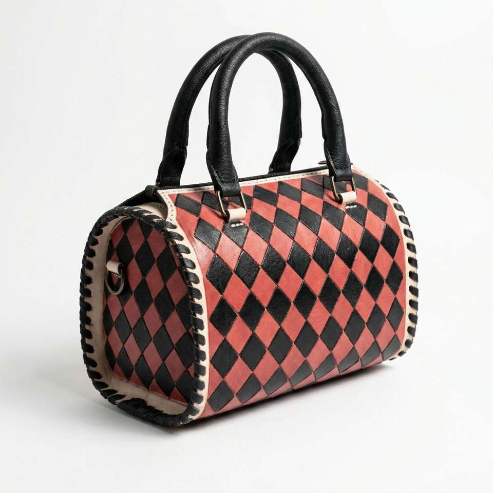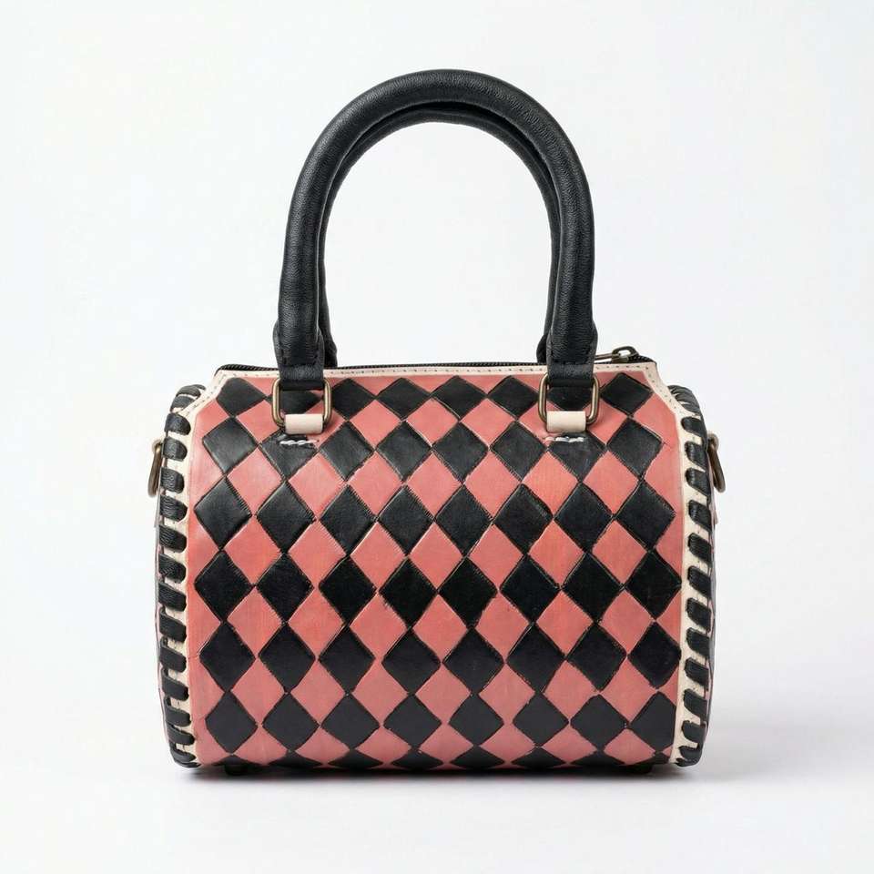 Sac de sport mini Speedy de grande capacité en cuir véritable 100% avec motif à carreaux noir et rose, de luxe, pour femmes