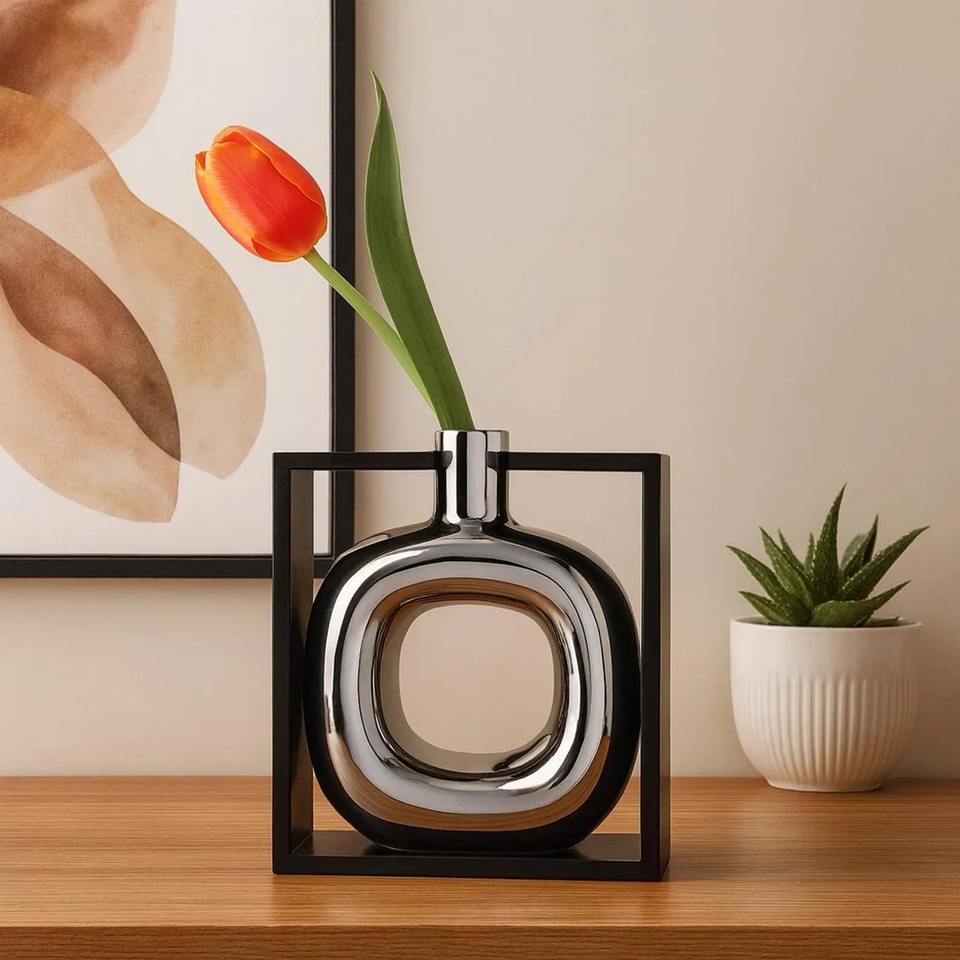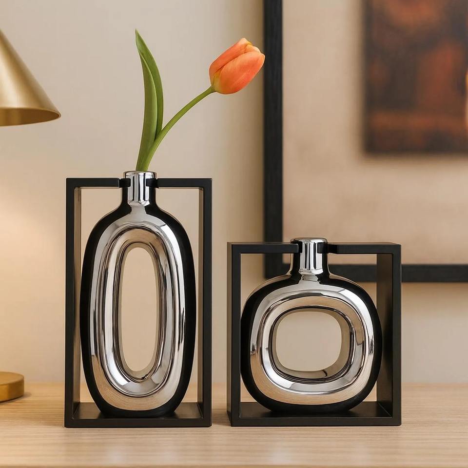 Vase à fleurs noir et argent pour la décoration de la maison, le salon, l'aménagement des étagères, le hall d'hôtel, la réception et l'affichage intérieur de bureau