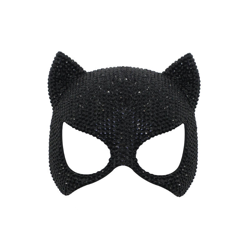 Masque de chat en strass noir et blanc, demi-visage, accessoire de fête costumée pour femmes, style mignon, en plastique