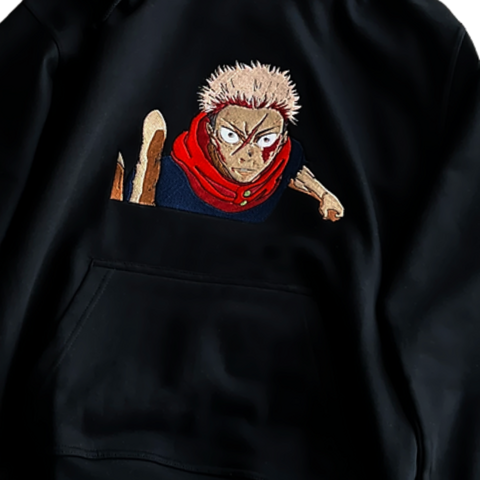 Noir Anime brodé à capuche unisexe surdimensionné Streetwear pull à la mode graphique chaud polaire décontracté mode coton à capuche