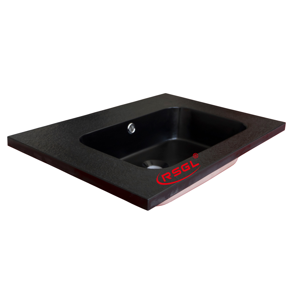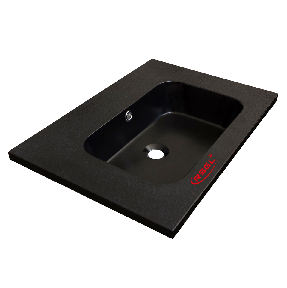Noir pierre artificielle lavabo semi-compteur sans trou de robinet