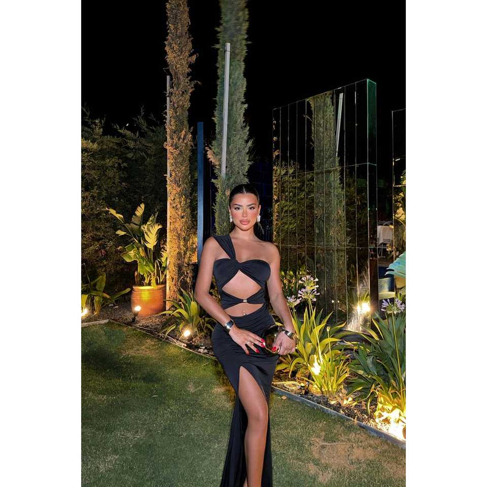 Black Aymil Women's Dress Long Formal Evening Ball Gown Crocheted Technique Luxury Style Empire Straight Rhinestone Floor-Length